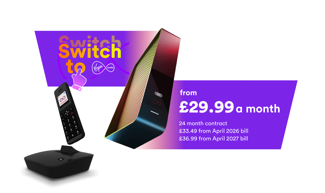 Virgin Media services are only available in eligible Virgin Media network areas. Home phone is not available in new network expansion areas.