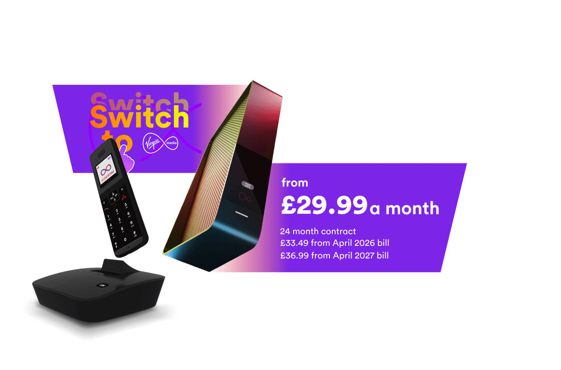 Virgin Media services are only available in eligible Virgin Media network areas. Home phone is not available in new network expansion areas.